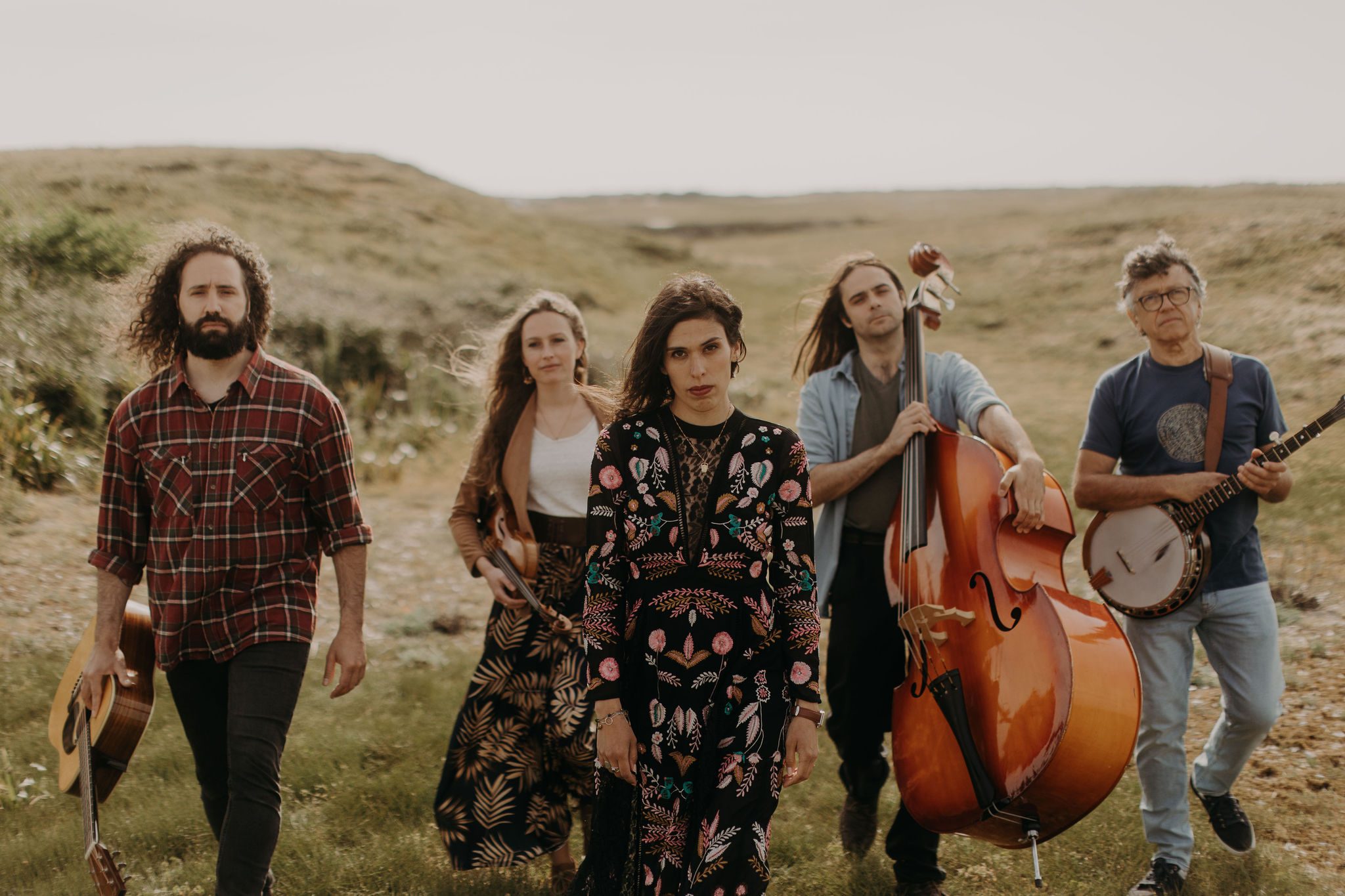 Pour “Aldebaran”, planète imaginaire et premier titre écrit de l’album, elle explore les éléments et les dynamiques astrales. Cette petite planète, composée à la guitare et à la voix, prend bientôt corps dans un projet plus grand. Très vite naît l’envie d’un quintet, d’un clip, et puis d’écrire des morceaux comme des jalons de vie. Ainsi sera donc la trame de l’album : l’ordre des chansons a l’allure d’une trajectoire. Dans “Méridienne de l’Aube”, le bonheur des rencontres au gré des voyages semble percuter l’ivresse adolescente des premières fois. Dans “Le Bal”, elle chante les émois du grand âge. Album bluegrass, Horizons puise dans le genre ; la vigueur d’un chant du peuple, le vif entrain des sonorités old-time, la noirceur des textes et la puissance du sourire. Le morceau “Louve”, dès lors, évoque la mort de la bête mal aimée, mais comme un cri du cœur. Pour donner la voix aux sans-paroles, il fallait que le sombre soit tenu par des voix en harmonie, des arrangements dynamiques et gonflés de vie : la gaieté cathartique laissée en héritage.